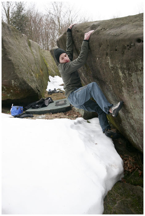 Mardi 9 Février. ENFIN une journée où l’on peut grimper dehors, depuis le temps que je n’ai pas touché autre chose que de la résine !